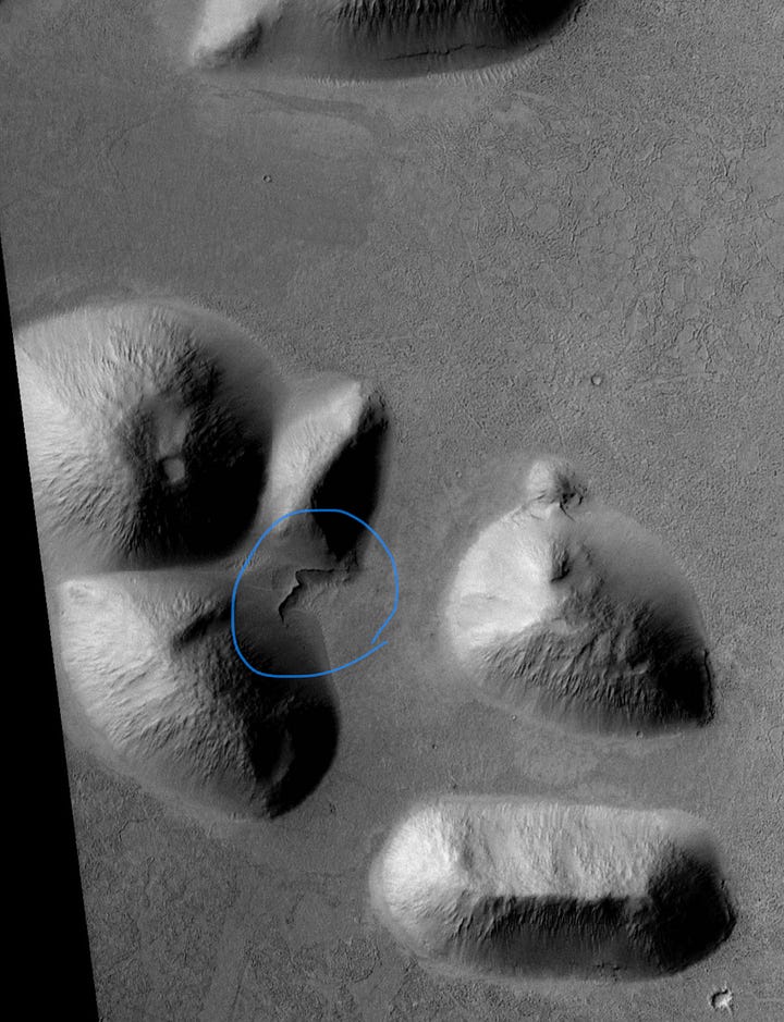 My humble request is to set aside your pre-conceived notions about what is possible regarding life on Mars, and examine what is in these photos with a clean slate. Forget the idea of a dead planet— an idea that is rapidly dissolving in the face of science. If it’s helpful, imagine these features are on Earth: would you be confident they were natural when you know humans exist to build them?