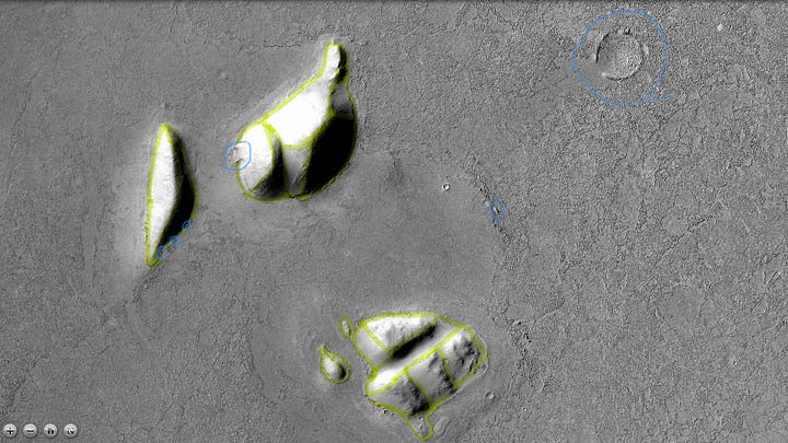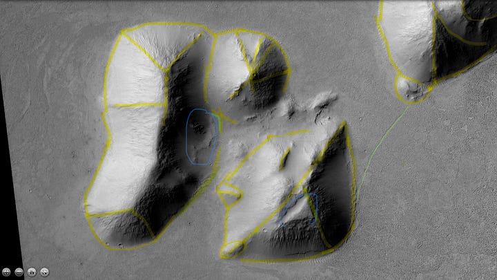 Other Martian researchers tend to focus on singular anomalous features. My analysis will be a little different. Using my formal education in history and archaeology, I’ll be doing detailed contextual analysis of the entire area to establish the case for a settlement pattern. Large artificial structures are rarely built in isolation; they are usually part of a city, which is then surrounded by small towns, villages, infrastructure (farms, canals etc.), and artistic/nonfunctional features (statues etc.). If these large structures are artificial, we should be able to find signs of the large population necessary to build such a structure.
