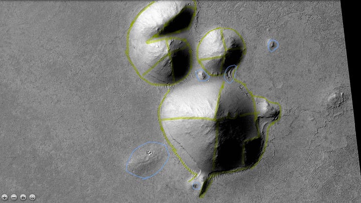 Individual anomalies on Mars are impressive enough. But I believe it is collective settlement patterns that will ultimately lead us to the truth that Mars once had civilization. Skeptics and debunkers have a lot to explain in this photo— not just each individual feature, but why so many of them are in this relatively small area. They have to explain why the broad contextual signs of a settlement pattern are not accurate, but the result of natural forces.