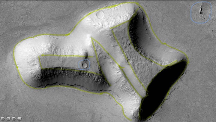 I also don’t subscribe to the theory that any group on Mars would have built something meant to be seen by us from the air or left “messages” behind for us to find. It’s irrational from many different angles. I can’t tell you anything about who might have built these things. I’m only here to point out they exist.